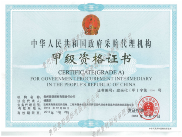 政府采購(gòu)甲級(jí)資質(zhì)證書(shū)