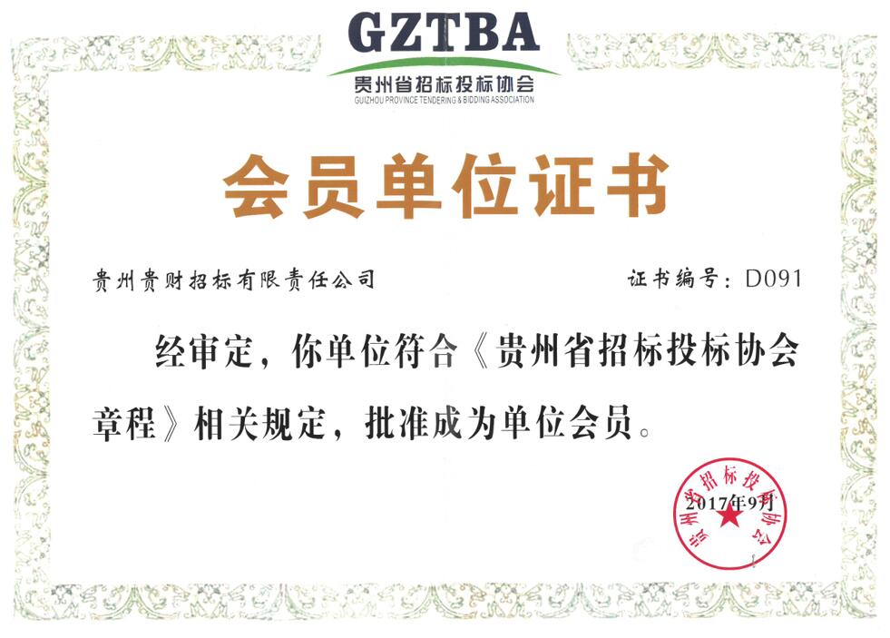 貴州省招標(biāo)投標(biāo)協(xié)會(huì)會(huì)員證書(shū)
