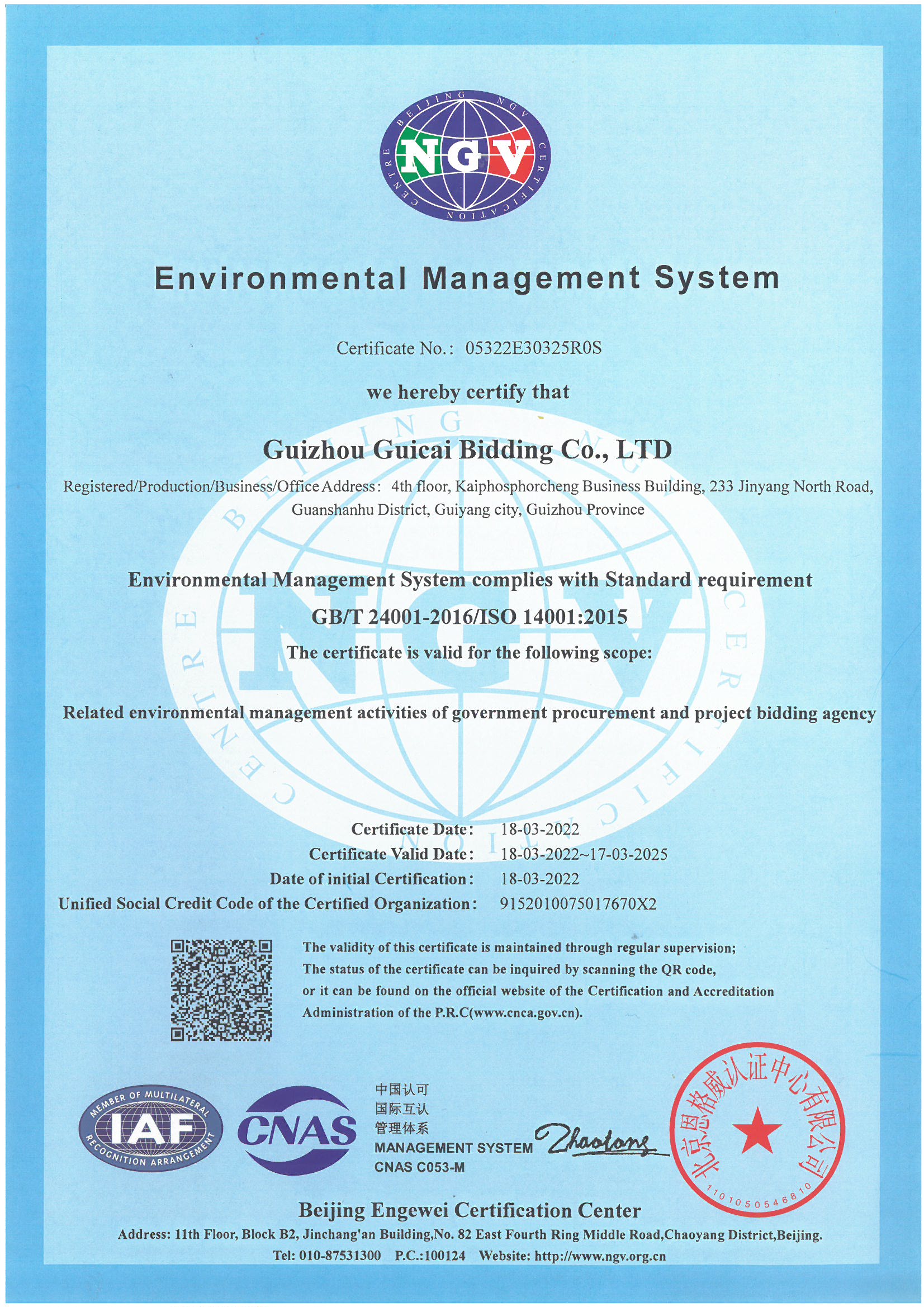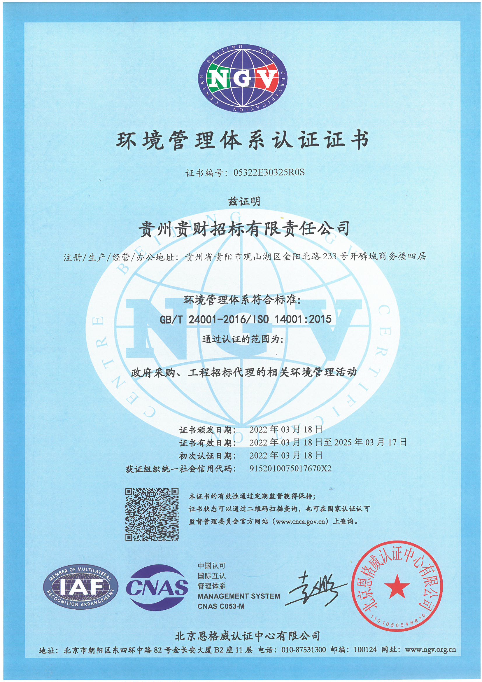 環(huán)境管理體系認(rèn)證證書(shū)