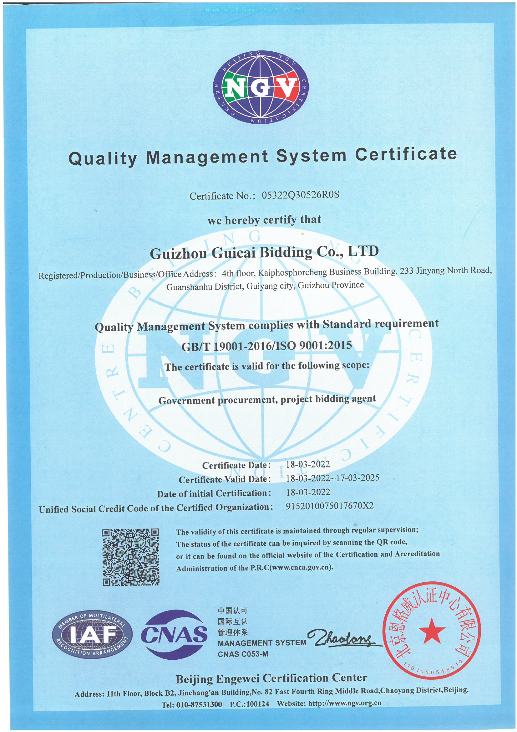 貴州省工程招標(biāo)代理AAAAA信用評(píng)價(jià)