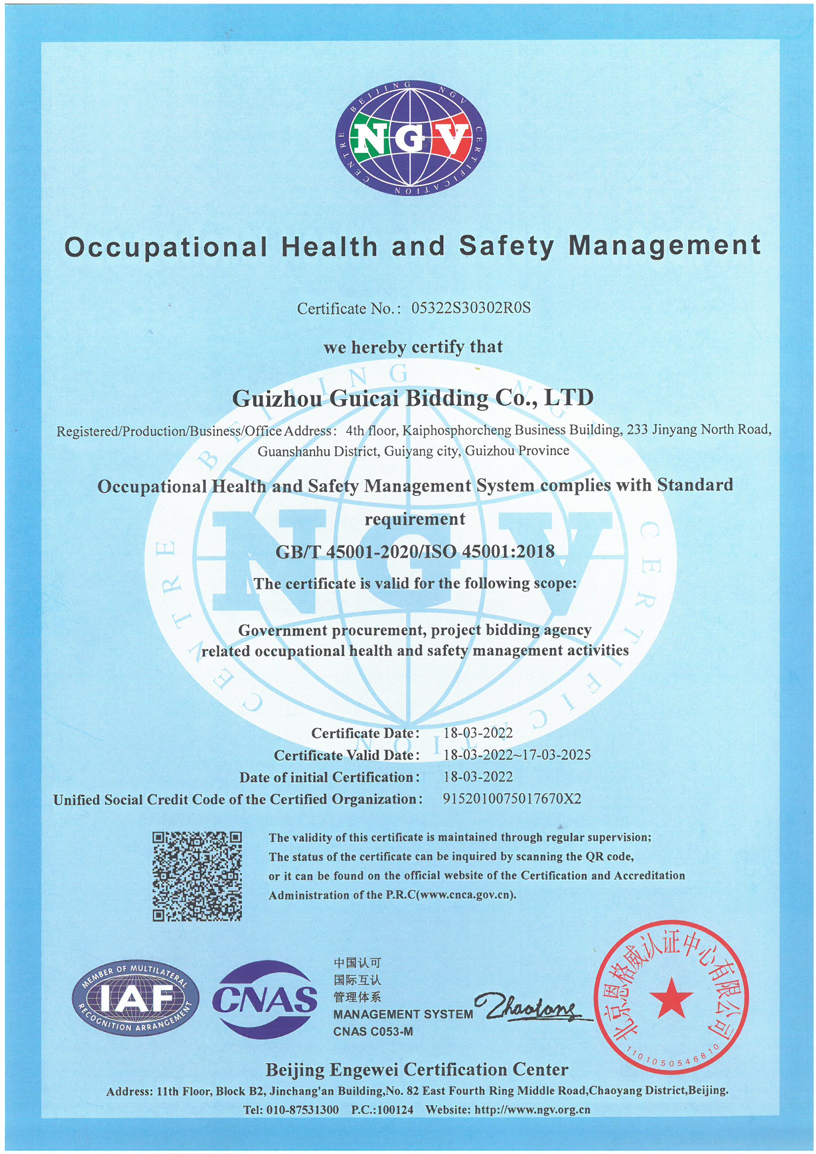 職業(yè)健康安全管理體系認(rèn)證證書(shū)